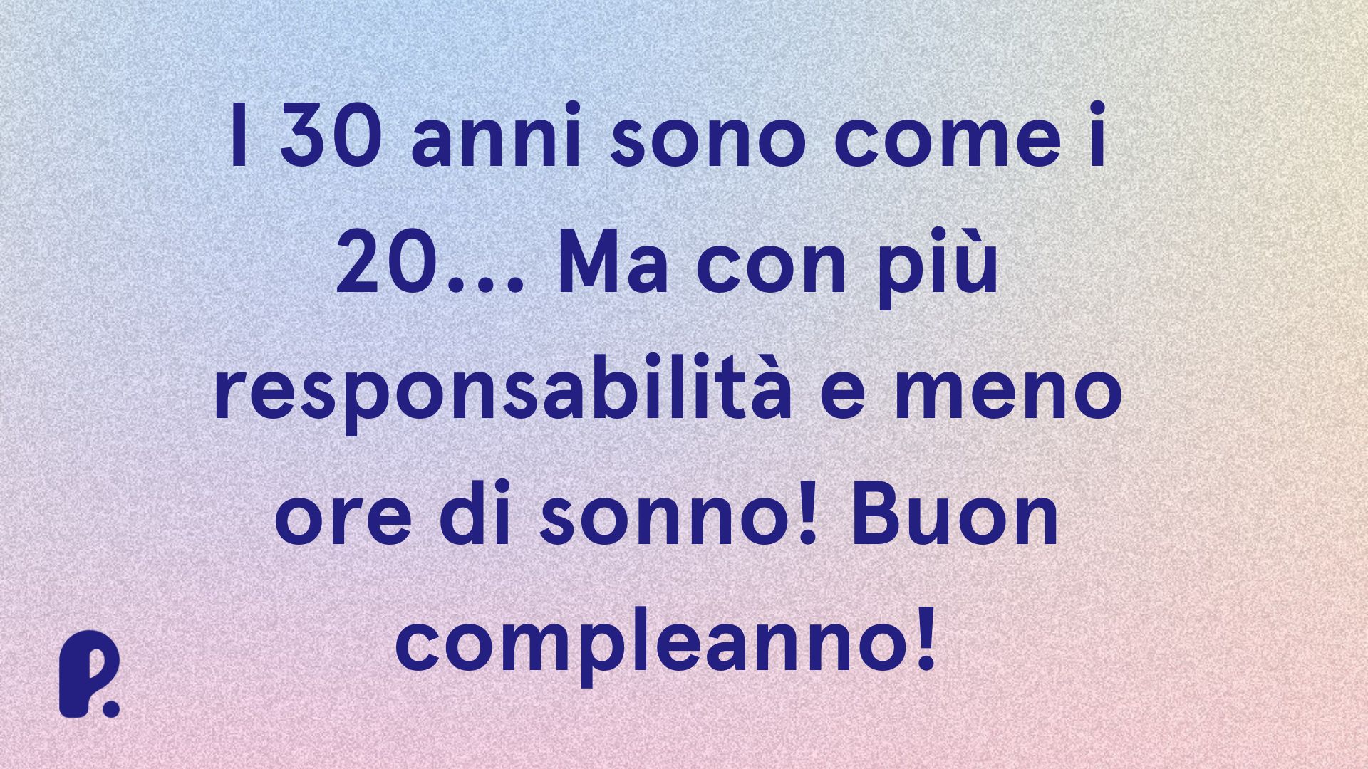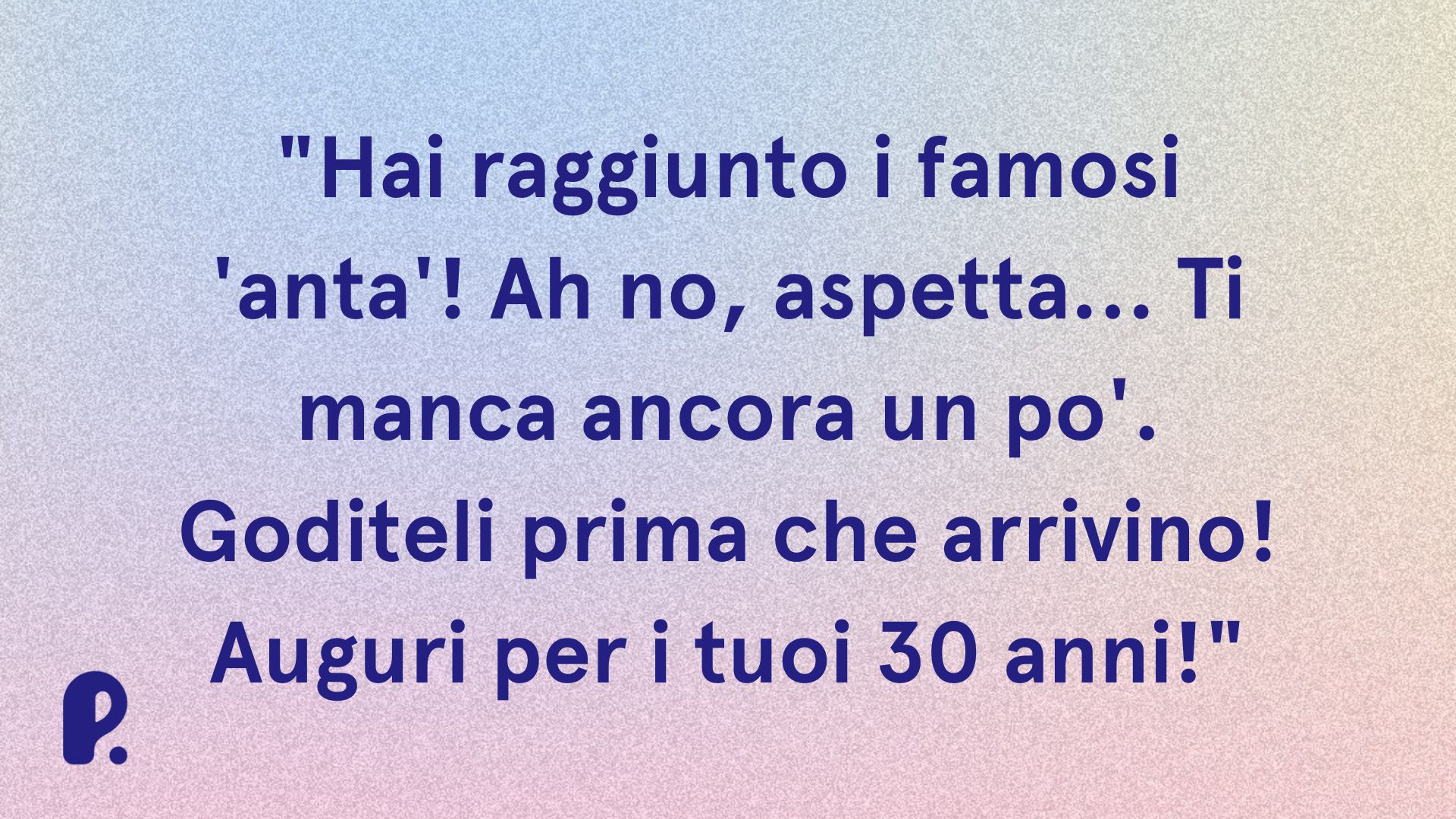 - "Benvenuto nel club dei trentenni! Un'età in cui la saggezza incontra l'entusiasmo. Ti auguro di vivere ogni momento con passione e di realizzare tutti i tuoi sogni."
