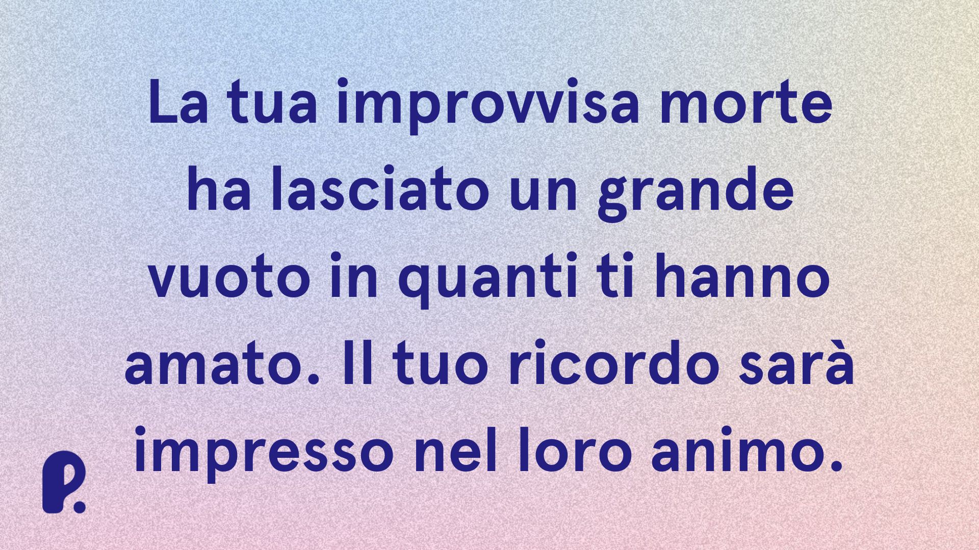 - La tua morte inattesa e rapida lascia un grande vuoto fra tutti coloro che ti amarono. Nel loro animo sarà sempre vivo il tuo ricordo.