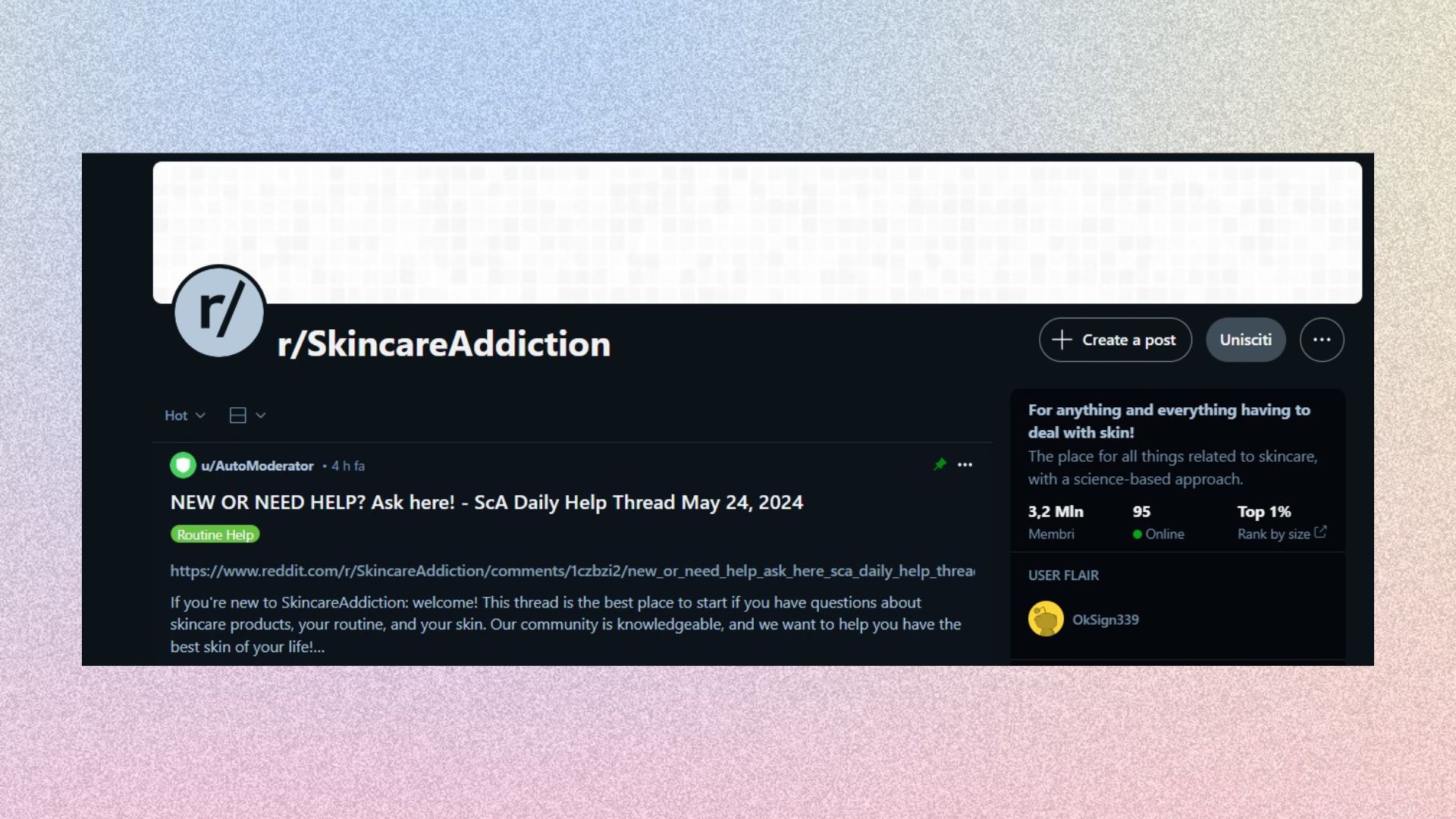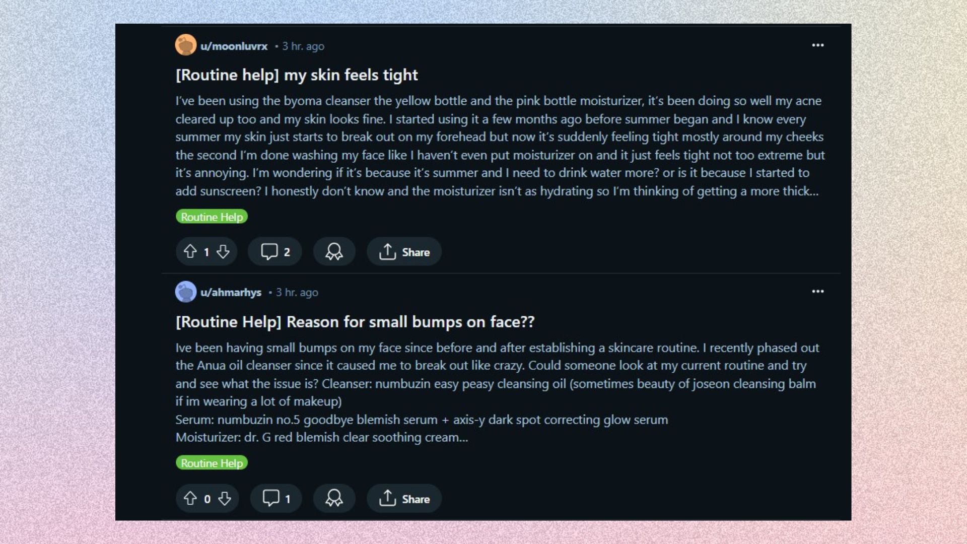 Thread Reddit "r/SkincareAddiction"